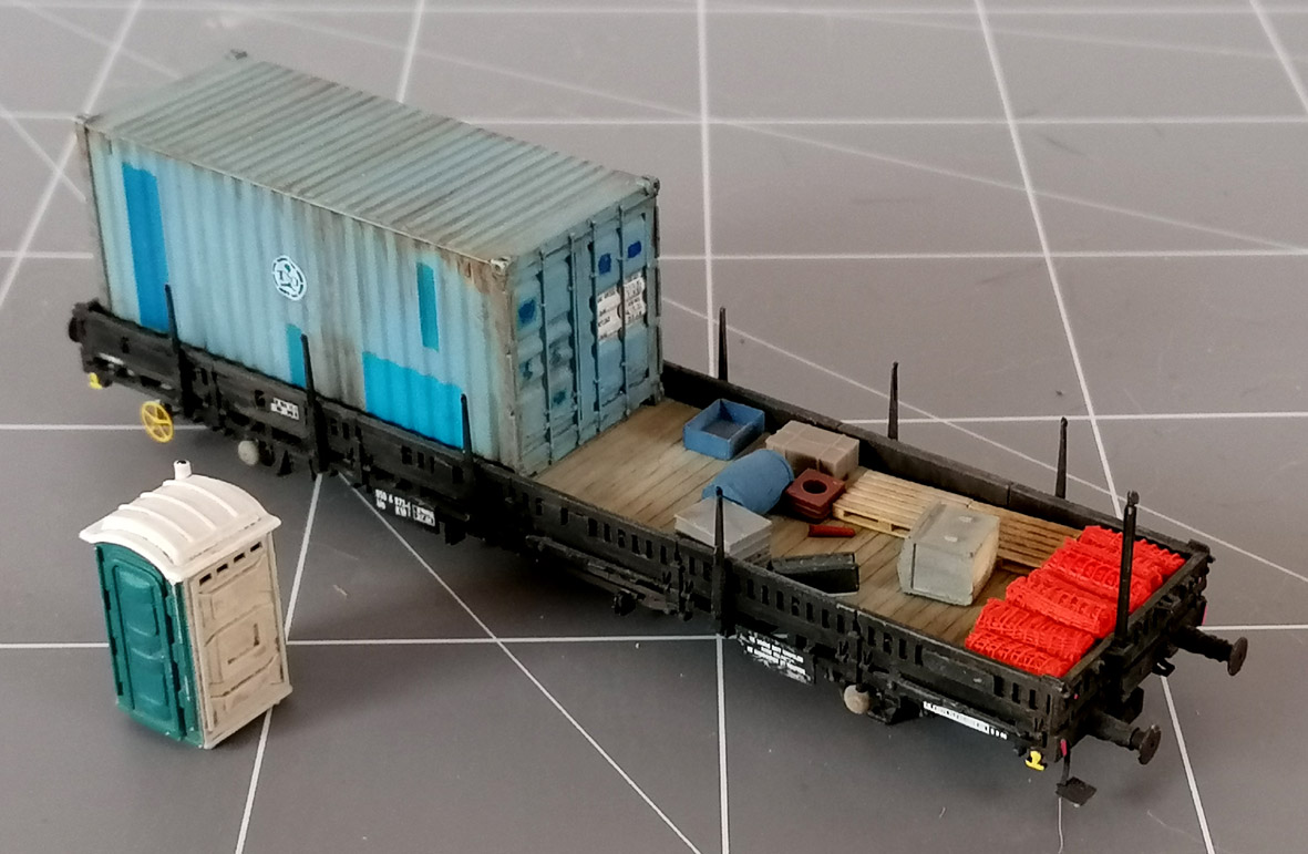 Par exemple sur ce wagon TSO: que mettre dans la première partie ? Des caisses ? Une tirfonneuse ? Des morceaux de signaux ?