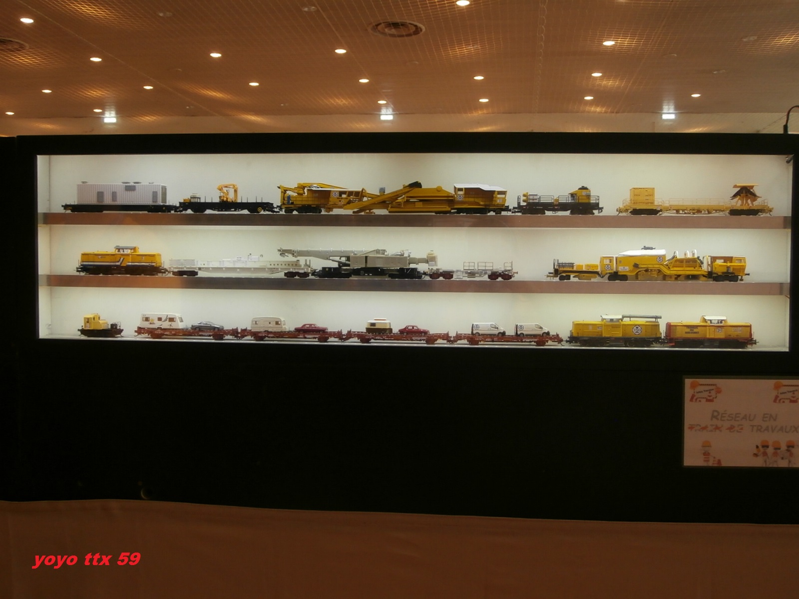 Voici maintenant la grande vitrine dédiée aux matériels divers TSO ( partenaire officiel du stand STTX pour cette exposition ) , aussi bien des modèles terminés que ceux en construction :