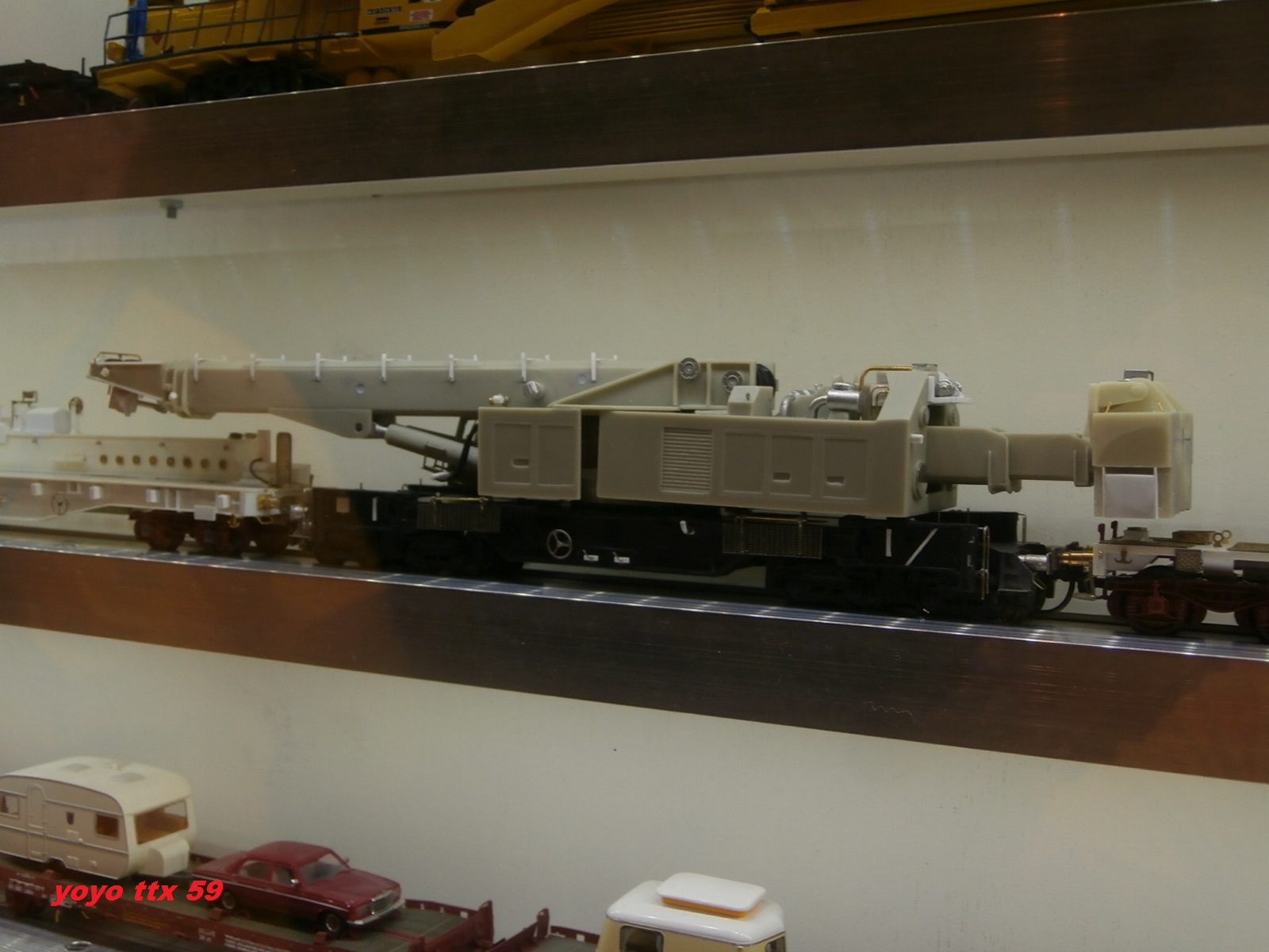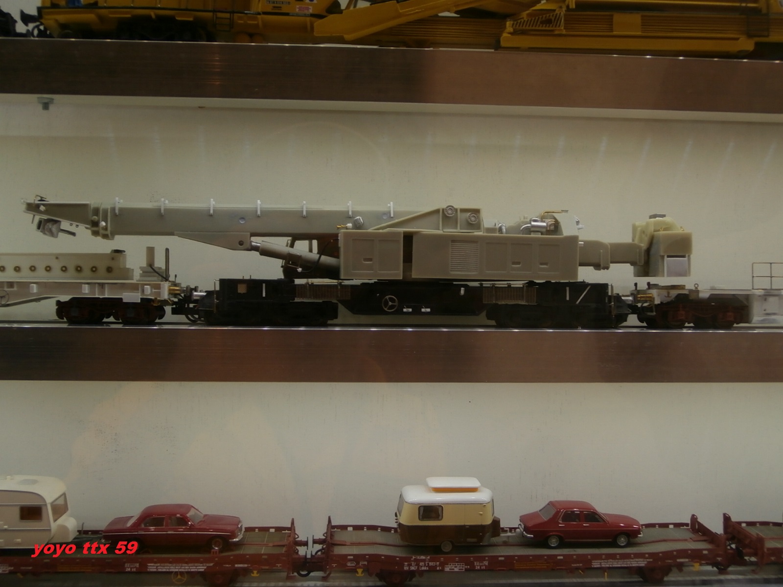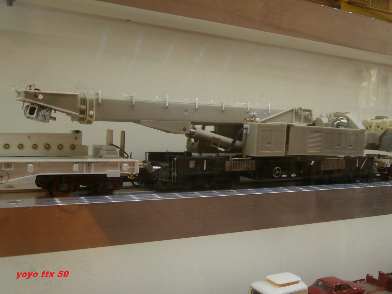 Voici le modèle en construction de la grue KIROW et une partie de la rame qui l'accompagne de notre ami Bernard CIRY ( :coucou: ) .