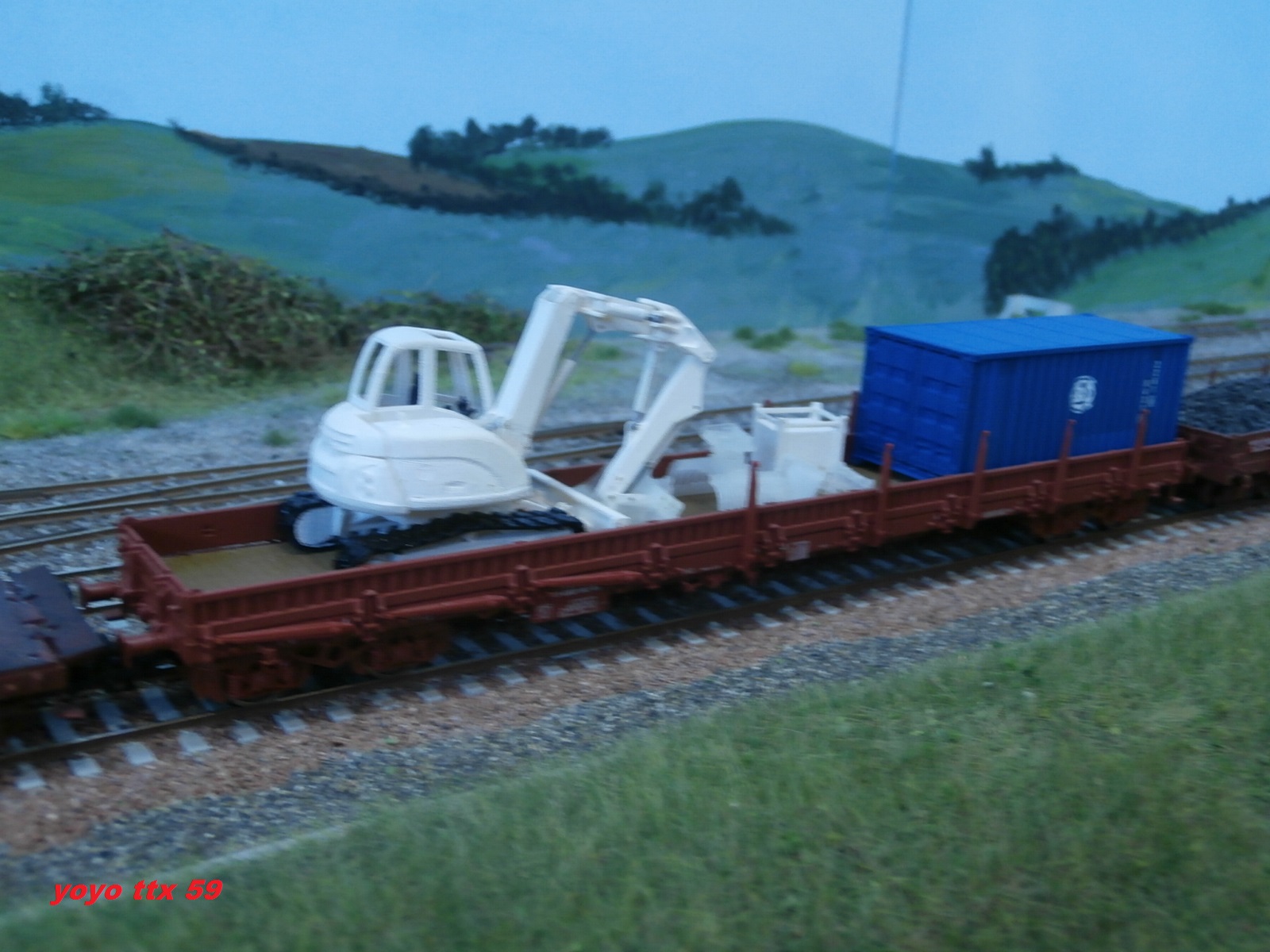 Voici maintenant ce wagon plat avec une grue MECALAC 10MCR de notre ami Guillaume ( :coucou: ) :