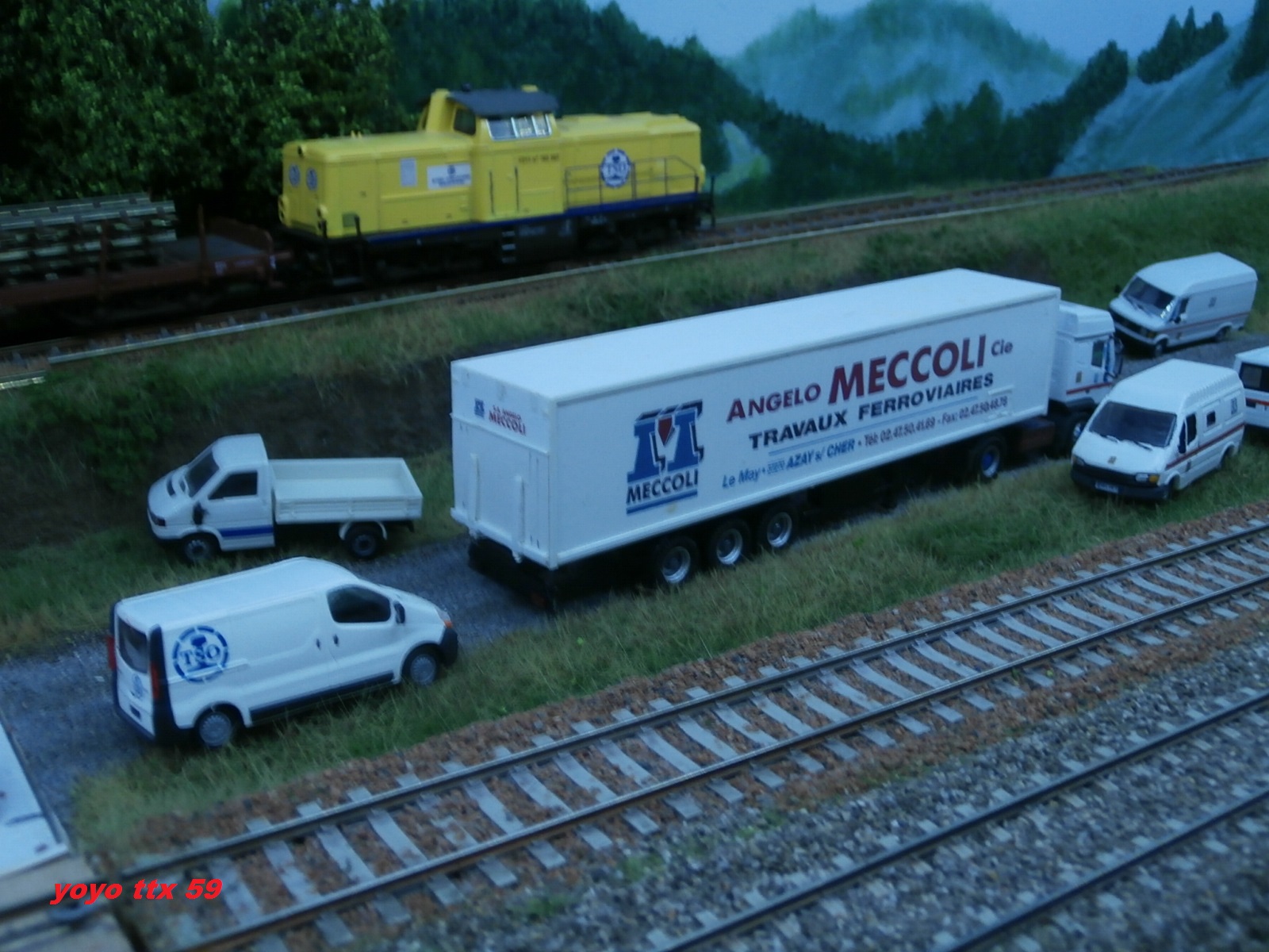 Voici les véhicules de chez TSO et Meccoli présents sur le chantier RVB :( Notez au passage la présence de véhicules ETF pour l'autre chantier qui ce trouve sur voies principales