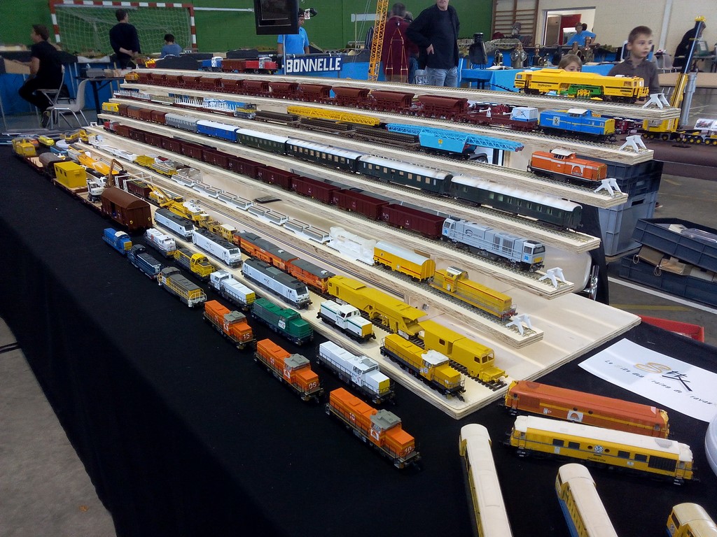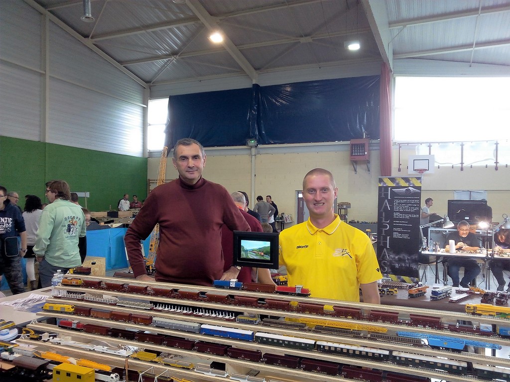 Lors de cette exposition j'ai eu la surprise de découvrir dès le samedi soir la présence d'un stand d'un membre du forum, à savoir Guillaume "ttxdudu90" avec lequel j'ai sympathisé. D'un commun accord j'ai exposé sur son stand le dimanche après-midi mon train de travaux TSO à l'échelle Zéro. Nous avons passé un bon weekend de convivialité et bien sur parlé des trains de travaux. Voici quelques photos du stand en question.