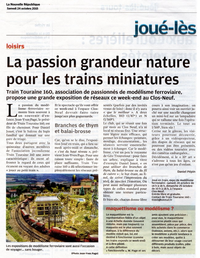 Salon du Modélisme "Joué en Train" (37) les 24 et 25-10-2015