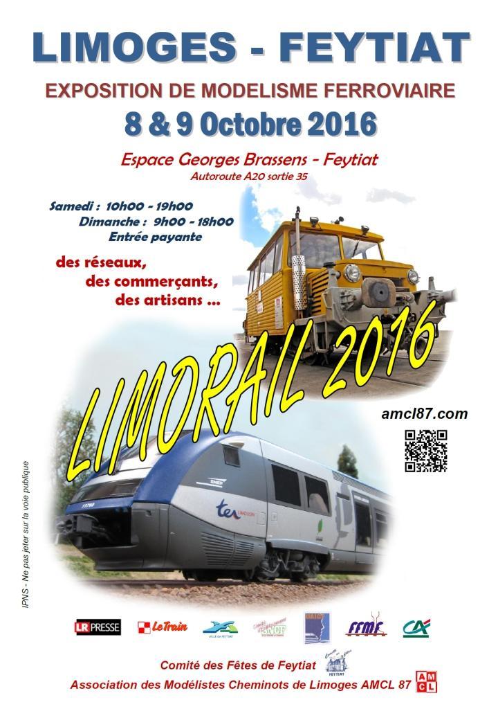 Organisé par l' Association des Modélistes Cheminots de Limoges et le Comité des Fêtes de Feytiat, LIMORAIL 2016 sera une exposition uniquement à thème ferroviaire, où les trains de travaux "TTX" seront à l'honneur.