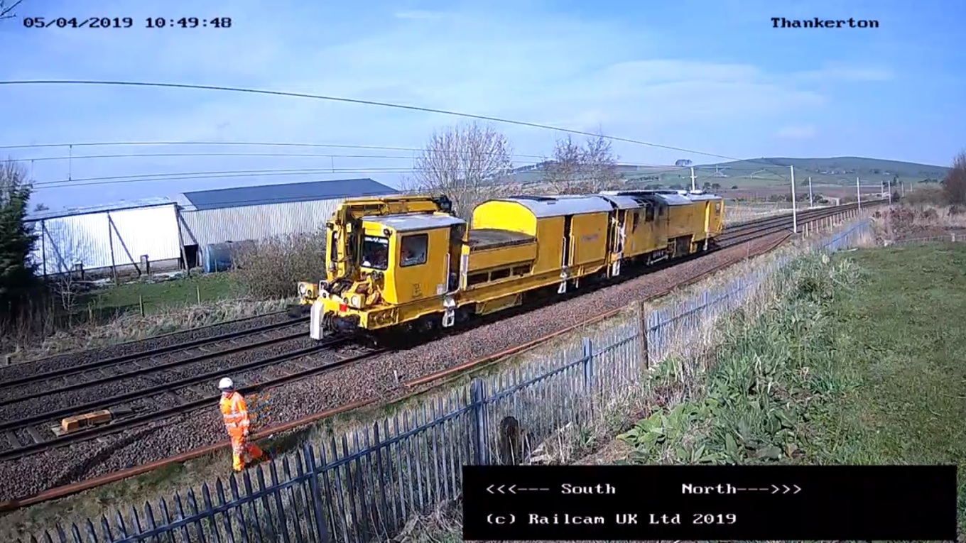 A l'instant sur la webcam de Thankerton en écosse, cette machine (DR 080233 Balfour Beatty) se dirigeant vers le sud pour le compte de Network Rail (maintenance); tout ce que je sais , c'est que sur le site, ils appellent ça une "stone blower".