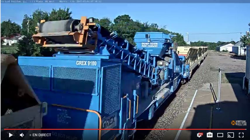 J'étais en train de matin les trains de fret BNSF sur la webcam "Virtual Rail Fan" de La Plata (MO) quand j'ai vu passer cette étrange machine qui est