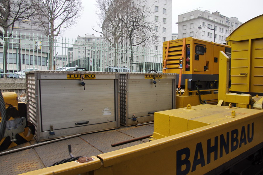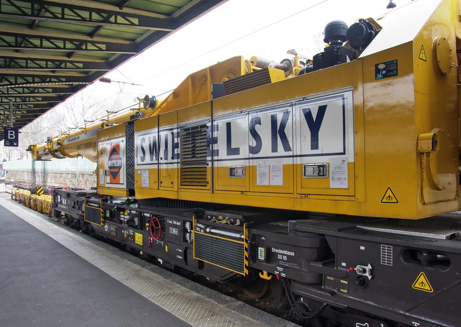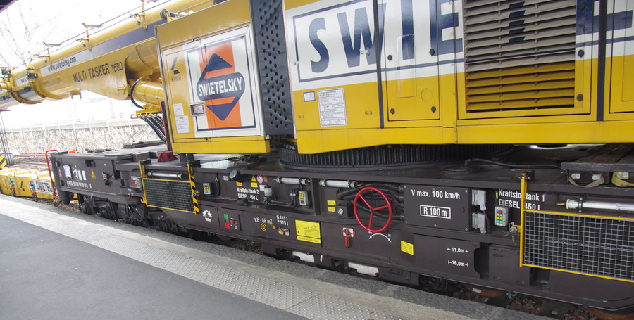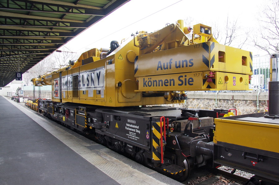 D-RTS 99 80 9419 011-8 - grue KIROW 1600 SWIETELSKY en gare de Paris Est voie n°30 le 21 mars 2015