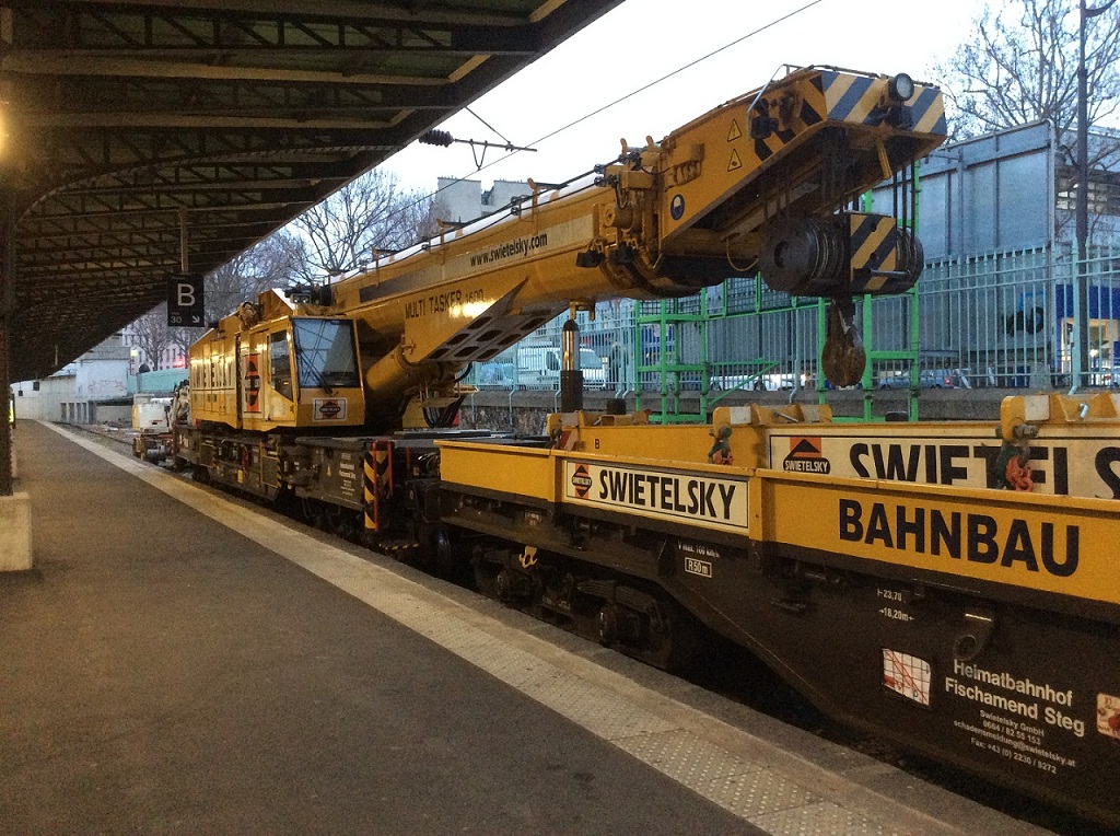 Voici le reportage de Gtr Lefèvre sur la grue Kirow 1600 de SWIETELSKY en gare de Paris Est voie n°30 le 21 mars 2015