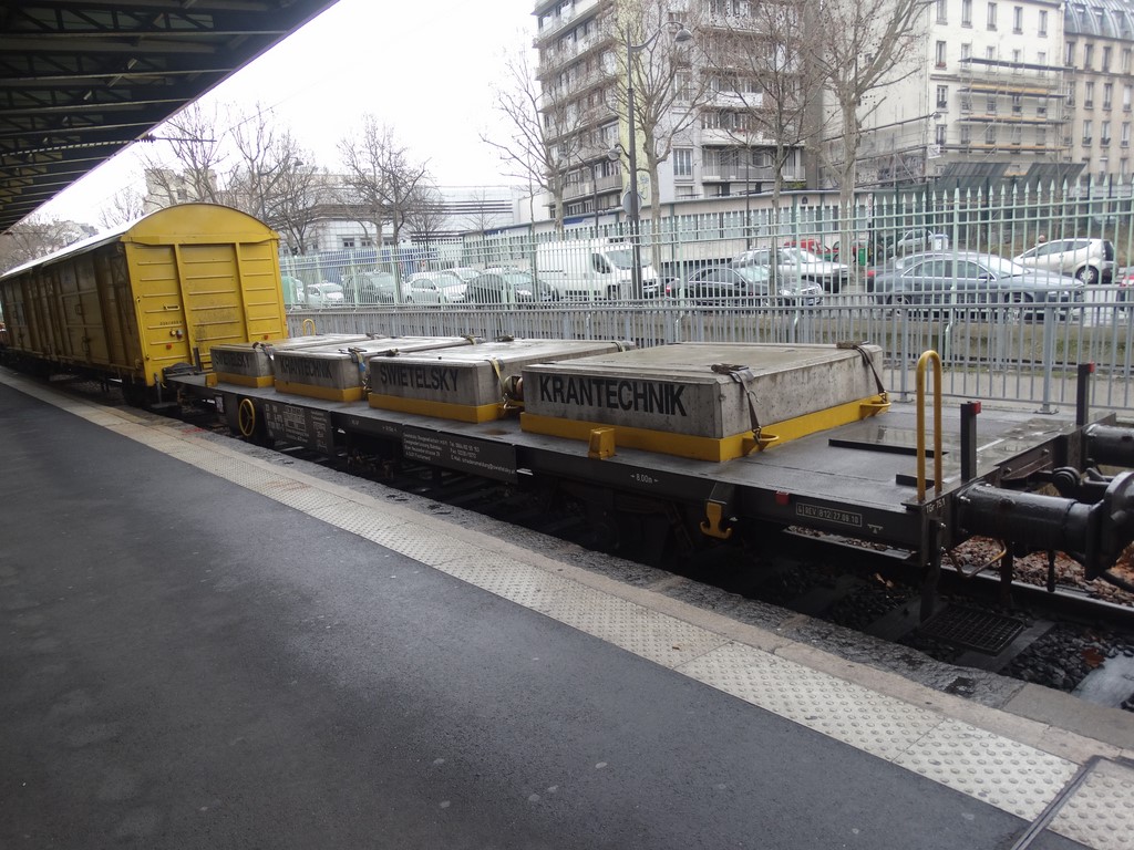 D-RTS 99 80 9320 010-8 - wagon porte contrepoids en gare de Paris Est voie n°30 le 21 mars 2015