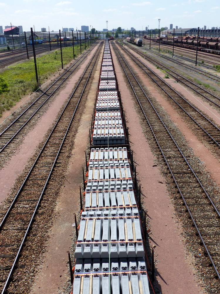 Voici une autre rame Italienne avec des wagons Rgs pour le transport de traverses conditionnées à Saint Pierre des Corps