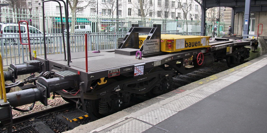 D-RTS 99 80 9320 010-8 - wagon porte contrepoids en gare de Paris Est voie n°30 le 21 mars 2015