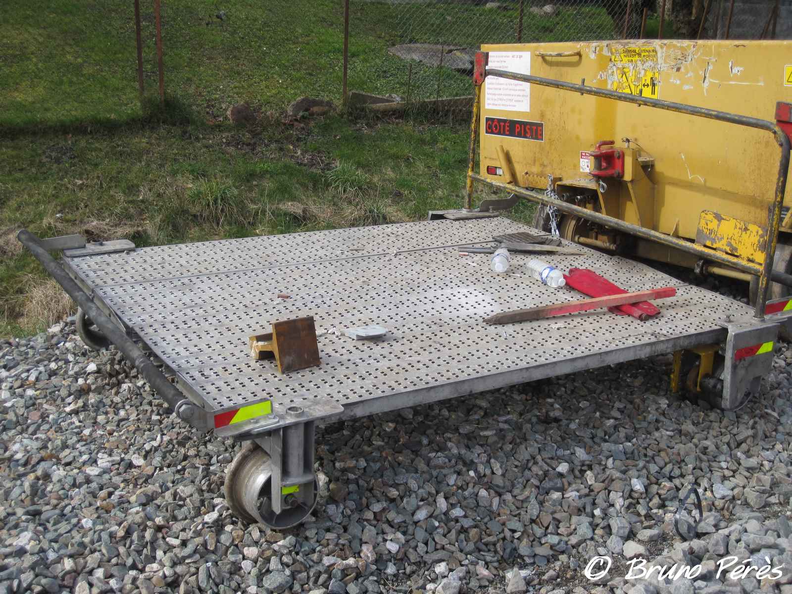 Il s’agit d’une plate-forme motorisée pour le rail de type CAD 1T fabriquée par les Etablissements GEISMAR.