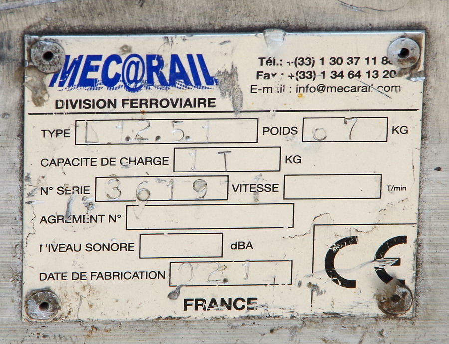 Voici le Lorry de Mecarail CMU 1T de type L125 n° de série 3619 de Colas Rail