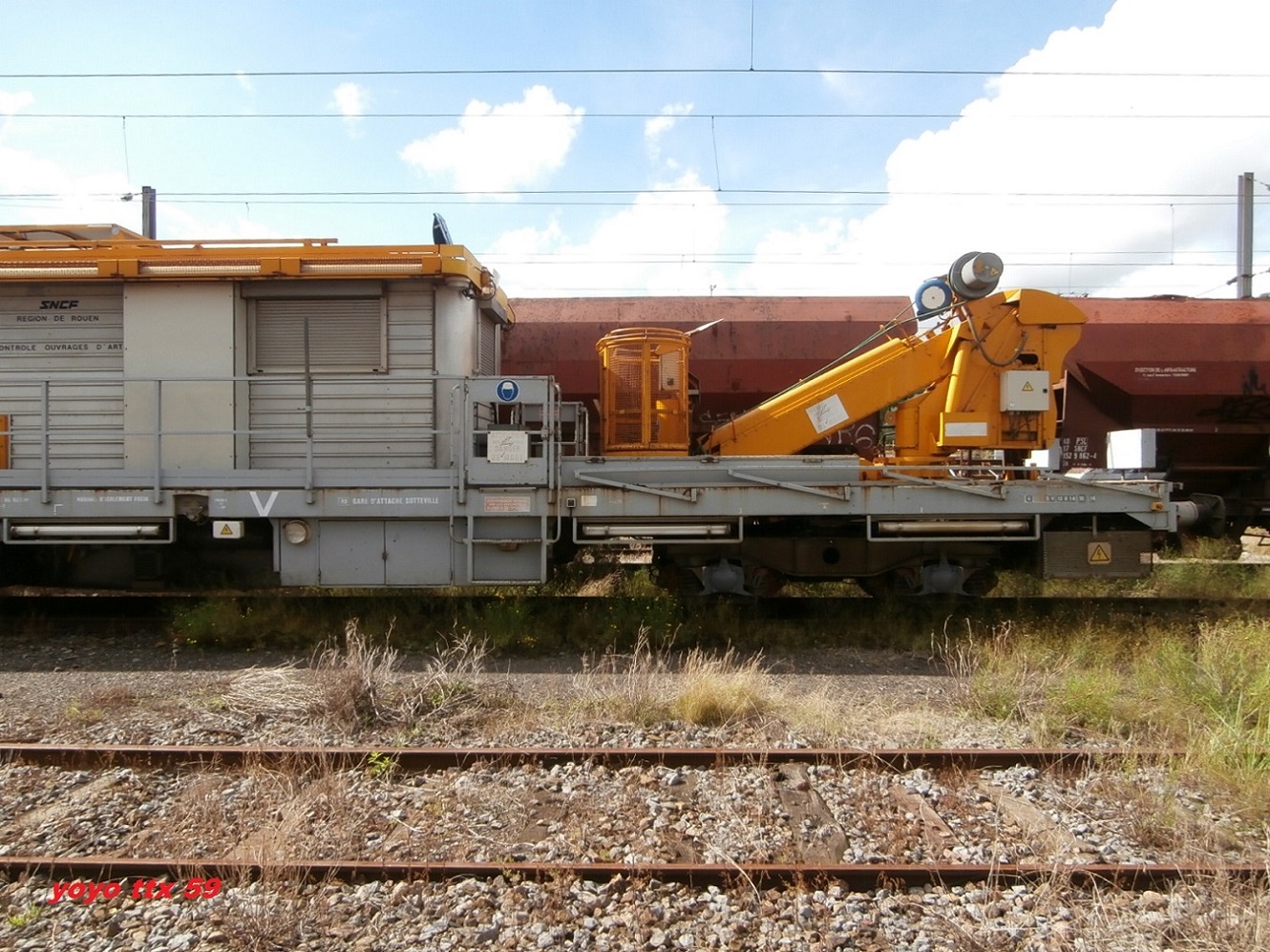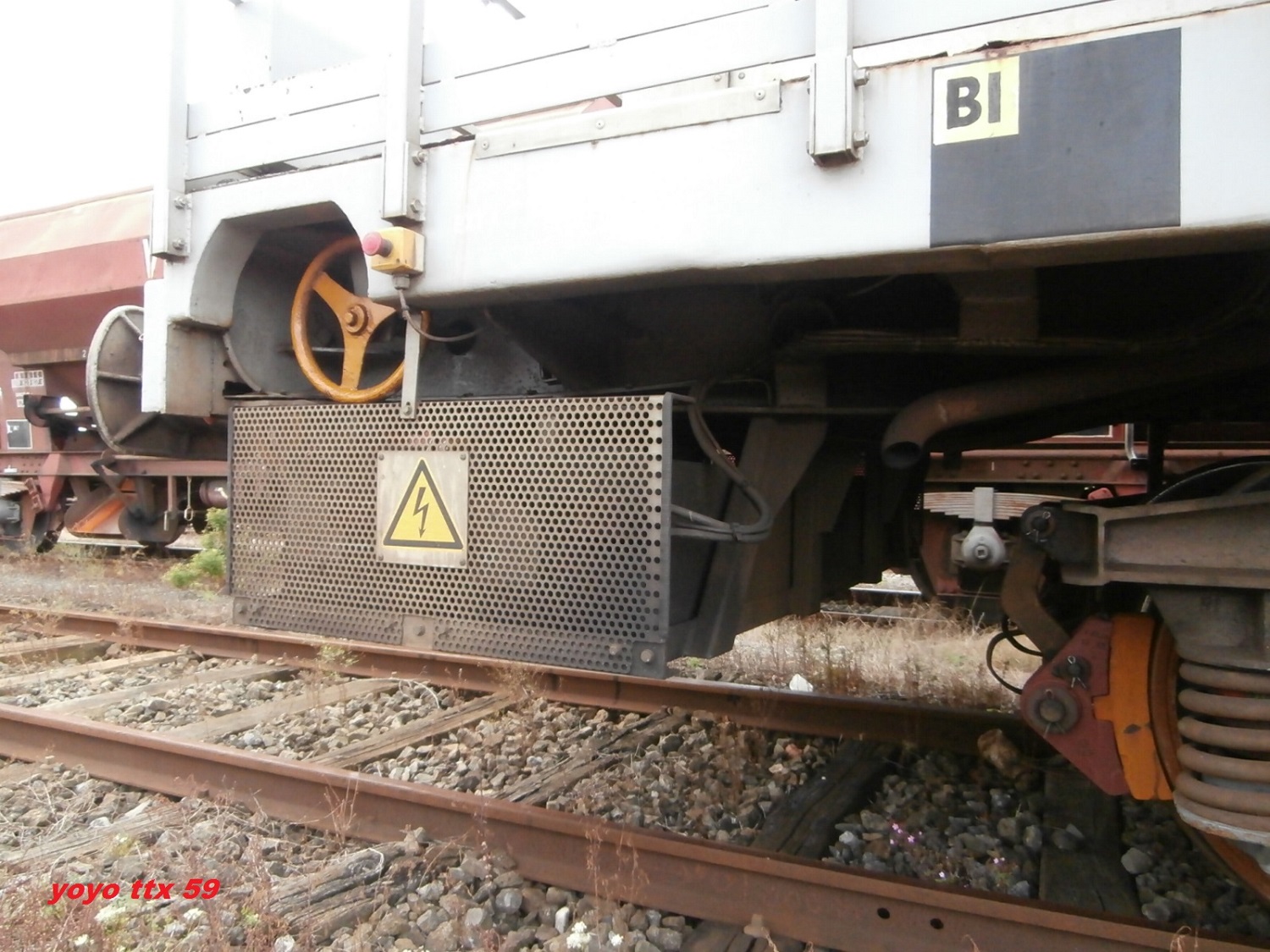 On voit qu'il fait partie des WIT modifiés et qu'il bénéficie désormais de batteries nécessaire à son autonomie de traction sur chantier (elles se trouvent sous les traverses avant et arrière). Il semble cependant que ce dispositif ne soit pas totalement au point ...