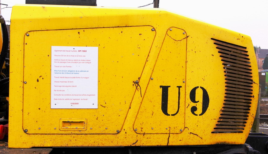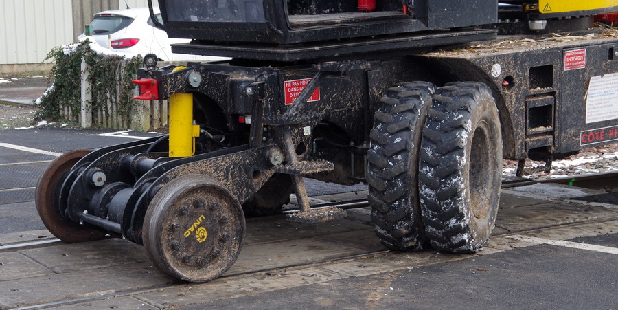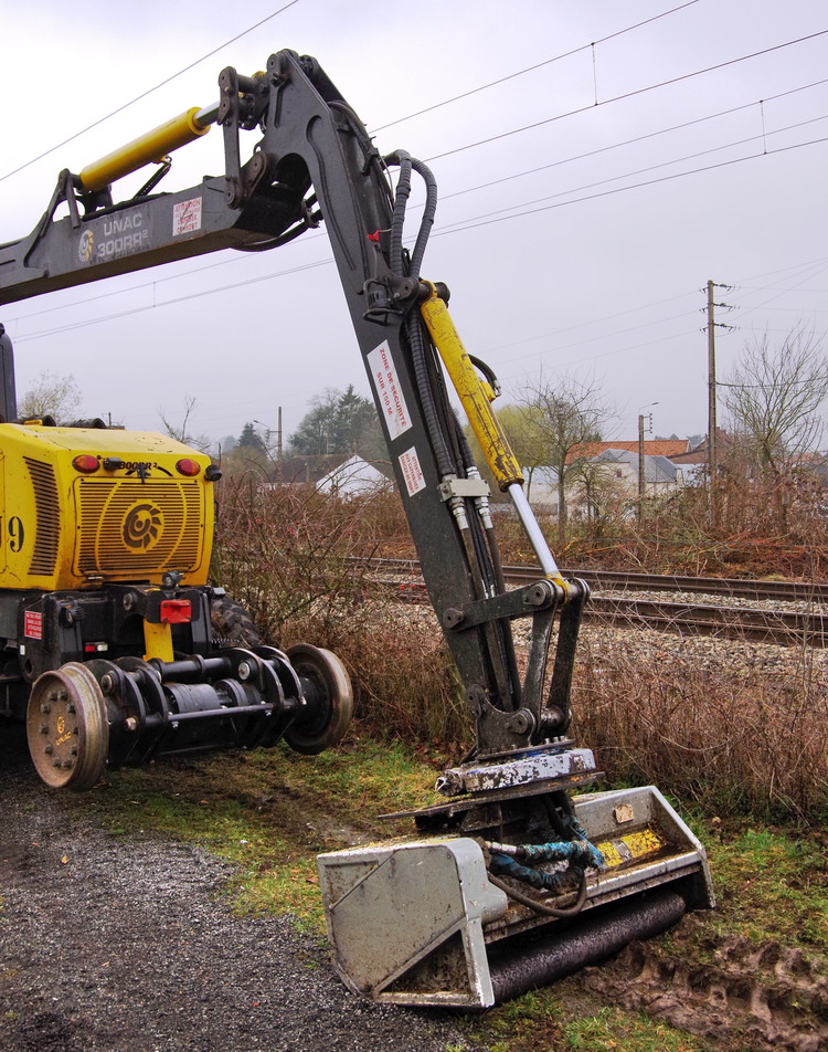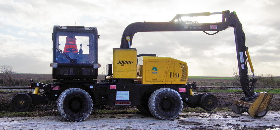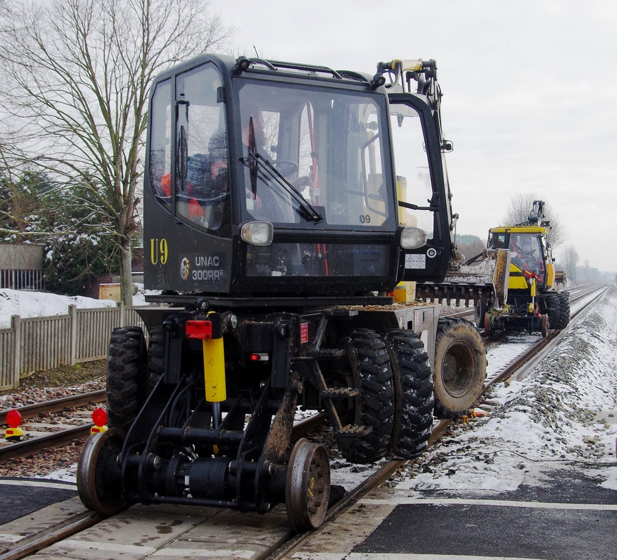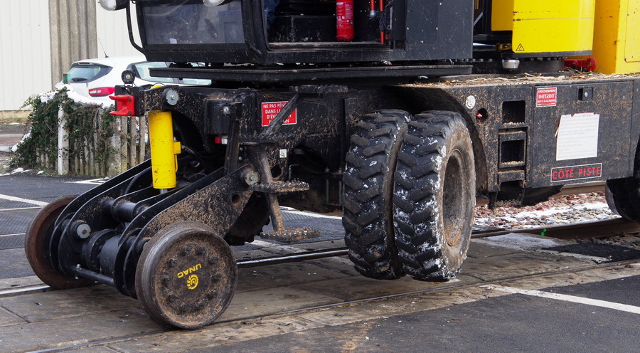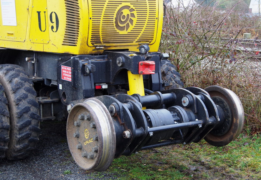 UNAC 300 RR2 de SEFA Environnement U9 au PN n°37 à Eppeville le 08-02-2018 avec enrayage de l'engin sur la voie