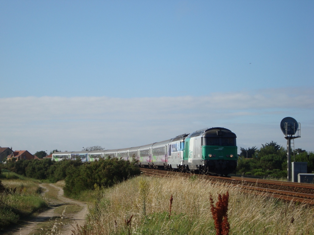Voici la 467505 Infra en livrée Fret avec une rame de traverses à Saint Pierre des Corps pour l'Ouest mardi 01 avril 2014 à 15h32