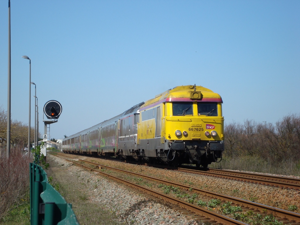 Bonjour Voici la 67625 Infra avec la 22383 Infra avec une rame Infra sur les voies de garage des rame Infra/SNCF Ã Saint Pierre des Corps le lundi 31 mars 2014 Ã 15h30
