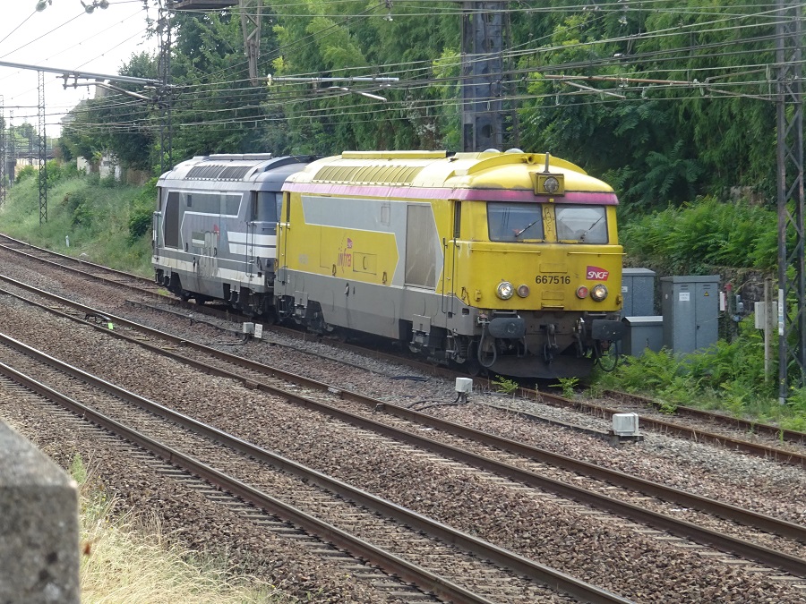 Voici une nouvelle pour le Forum la 667516 en livrée Infra (mise en service le 03-07-1972) en véhicule sur un train qui