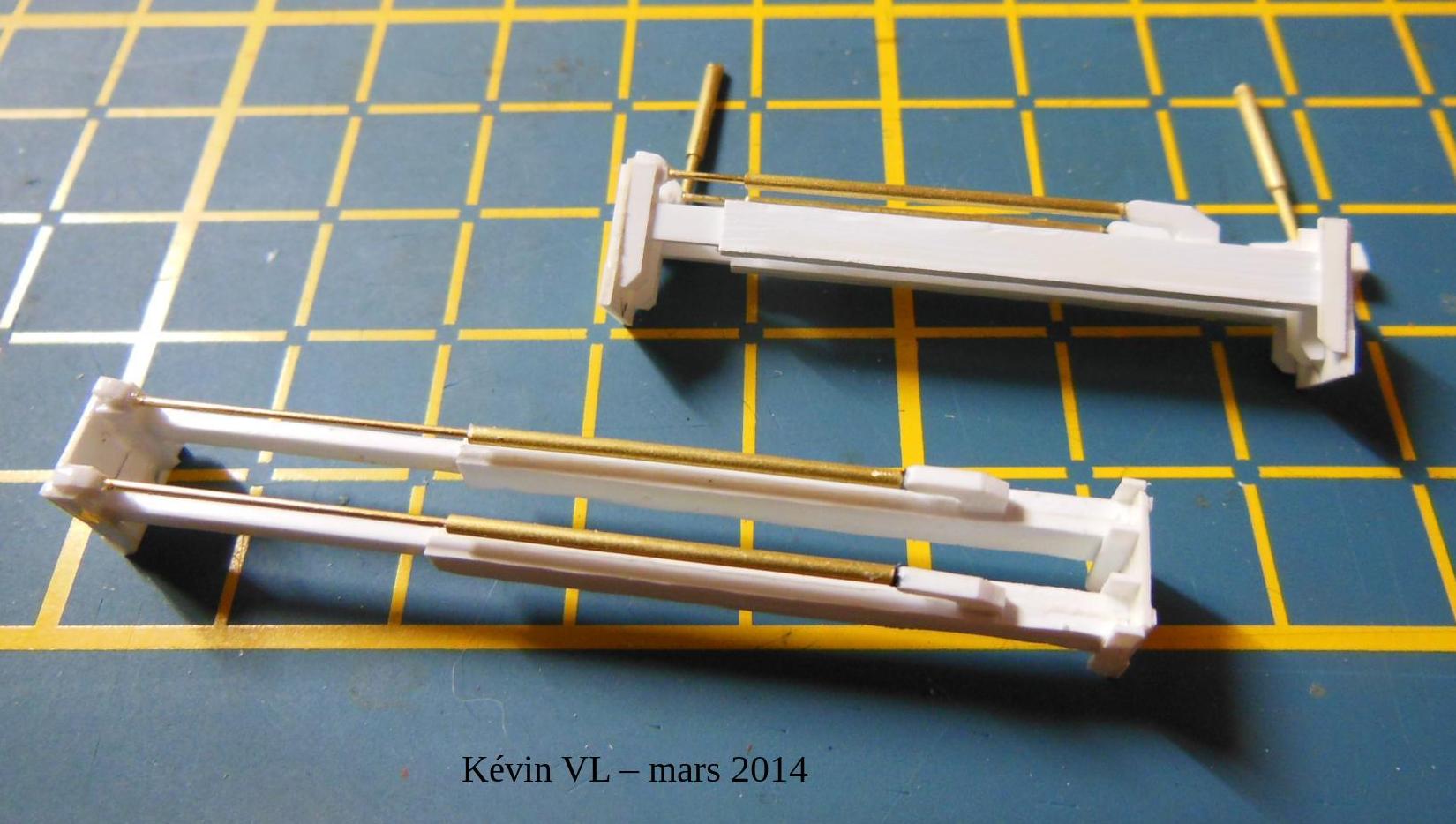 à droite, montage du support portant le palonnier sur les traverses (porteuses)