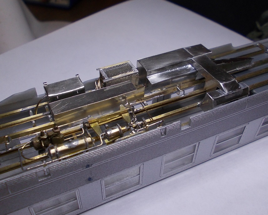 Les versions produites par Rivarossi ou HJ maintenant ont un châssis ou tout est moulé dans la masse donc d'un aspect assez "mastodonte" de plus ceux ci évoquent des châssis de voiture en service commercial et celui que je reproduits comporte des équipements totalement différents, disposition des différents coffres, tuyauteries, coffre de clim, etc... Les seules choses d'origine qui ne paraîssent pas avoir bougé sont les appareillages de freinage, ce que je reproduits en premier!!!