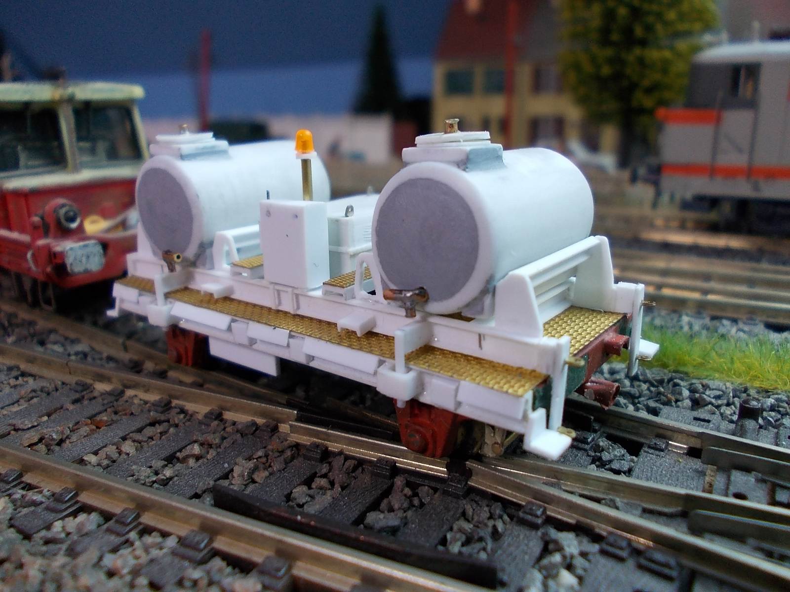 Inspiré par celui du dépôt de Longueau,voici un Teu laveur de voies sur une base roulante de Teu jouef.