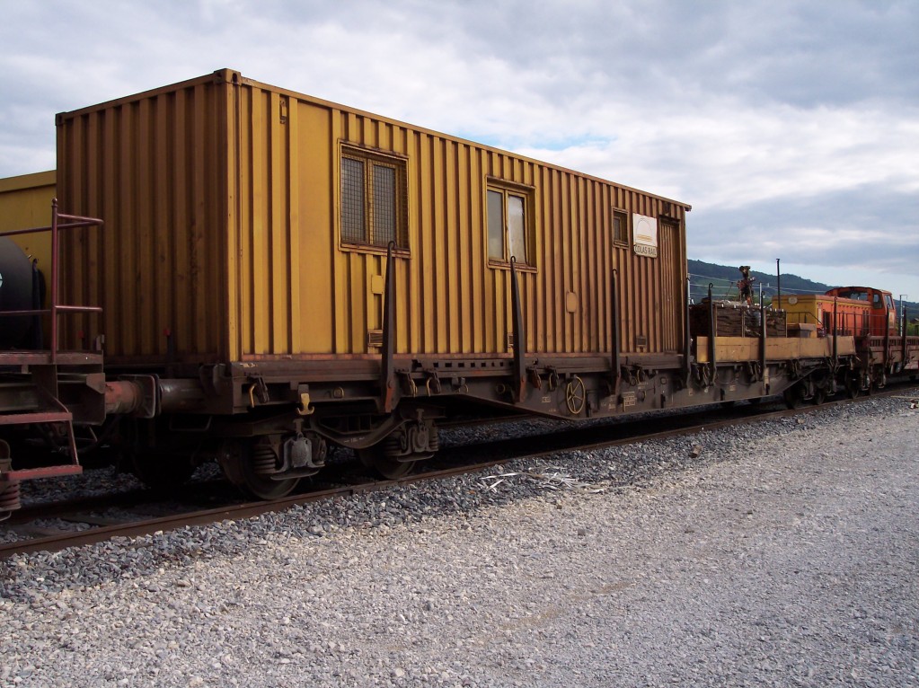 Wagon plat - 99 87 9 383 671-4 - Colas Rail F7000006 sur le RVB ligne 15 à Soulosse le 7 août 2017.