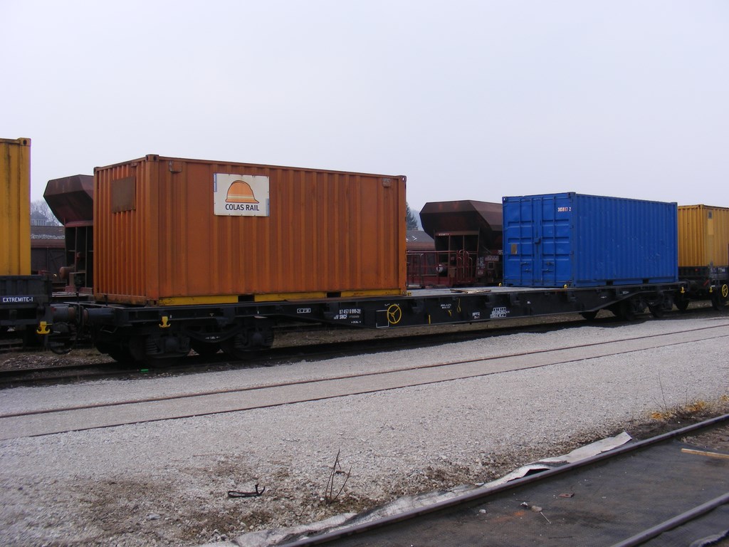 Un plat porte conteneur, immatriculé comme wagon de particulier....