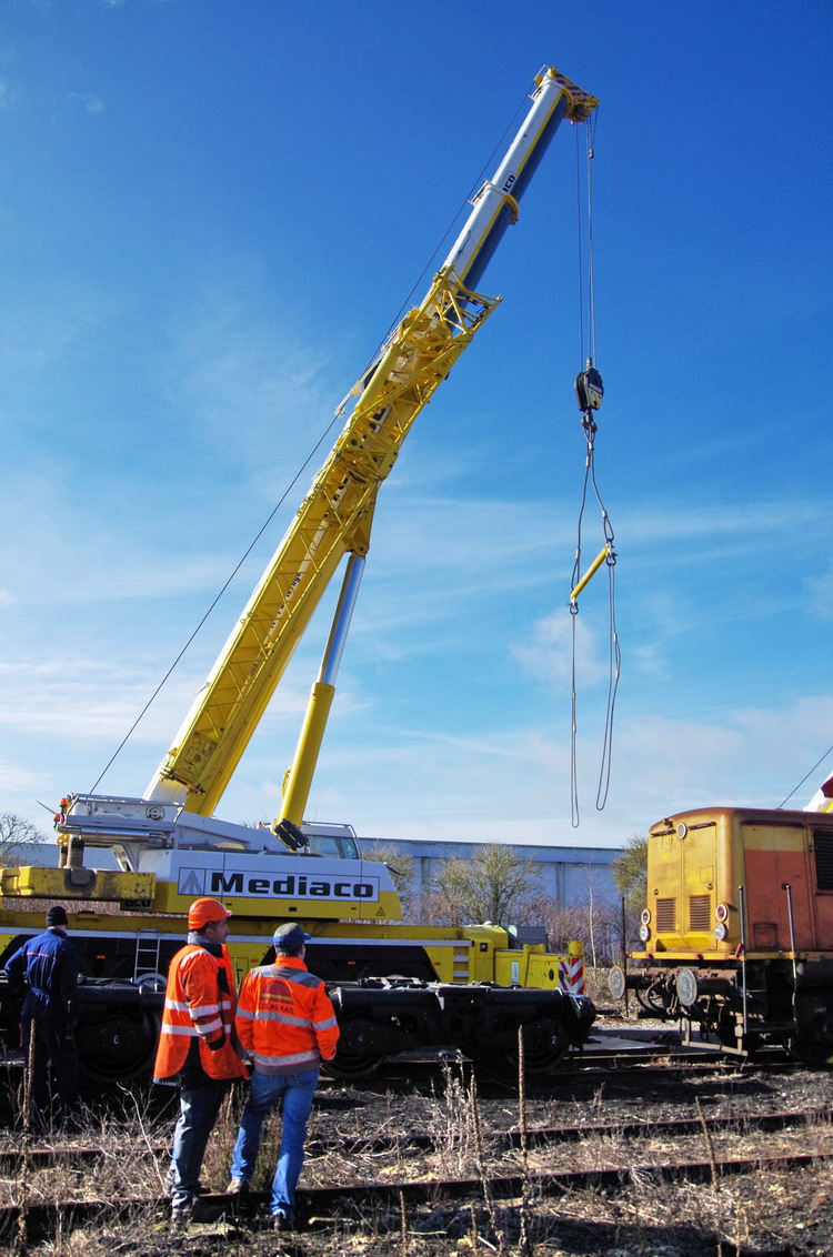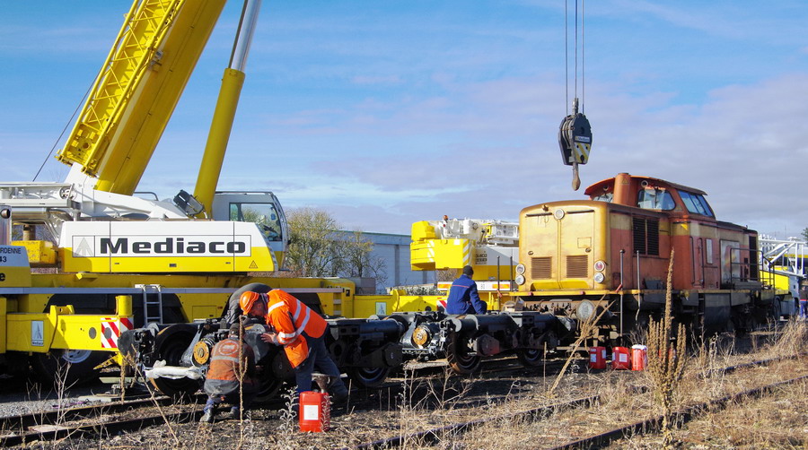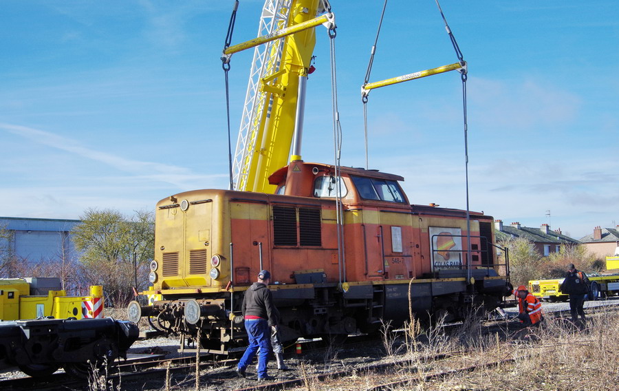 - une grue mobile LIEBHERR LTM 1100-4 de 100T pour le levage de la machine à Chaulnes le 06-03-2018