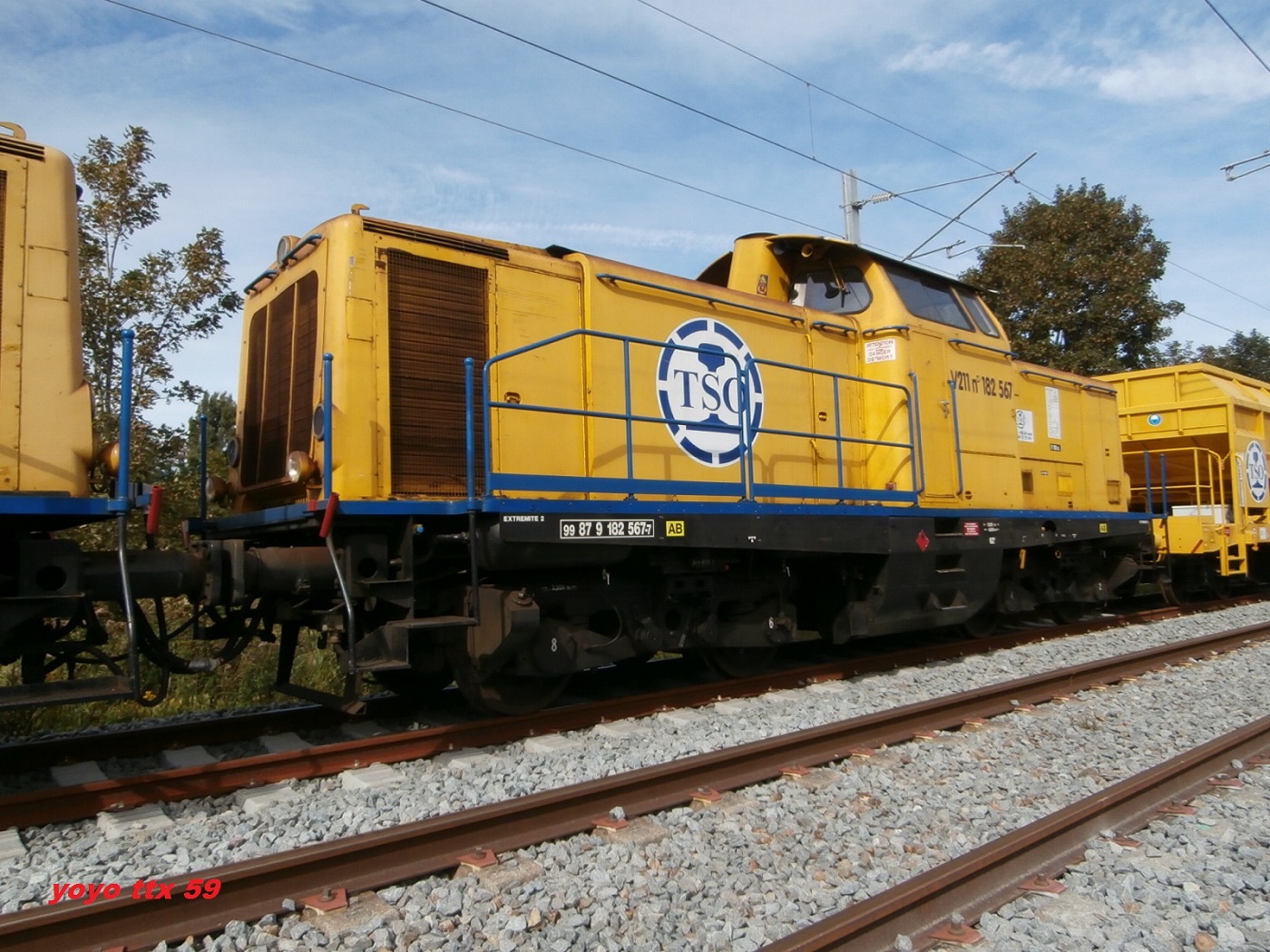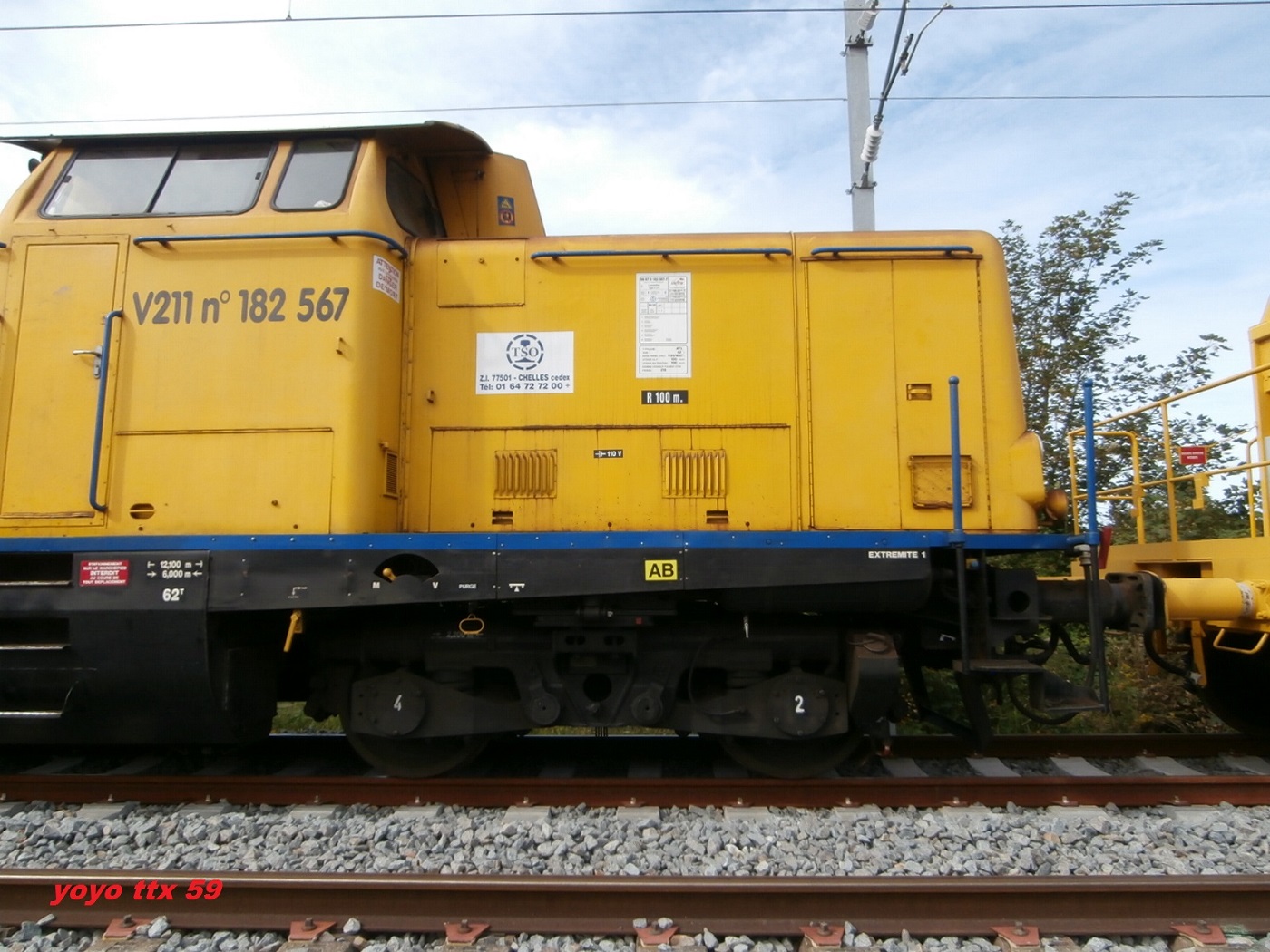 Ce V211 était a Gravelines le week end dernier sur le chantier de la ligne Dunkerque / Calais .Il était en compagnie du " V211 99 87 9 182 558-6 " .http://www.forum.sttx.fr/viewtopic.php?f=231&t=1727Voici quelques photos a Gravelines le 24/08/2014 :A suivre :