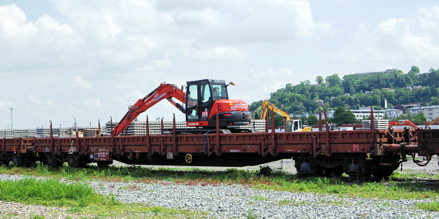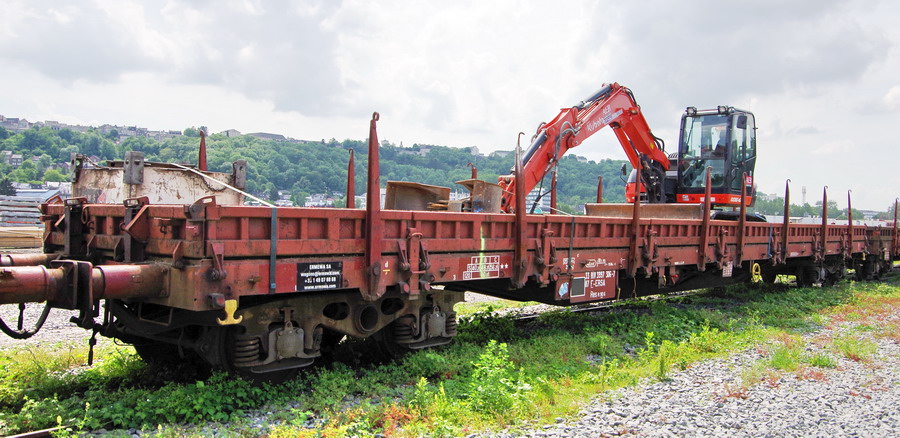 Le 33 87 3997 306-7 Res R90 6 RIV F-ERSA avec une mini Pelle à chenilles KUBOTA KX080-4A d'AEB