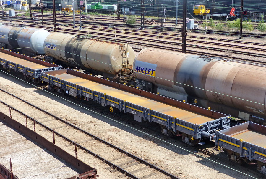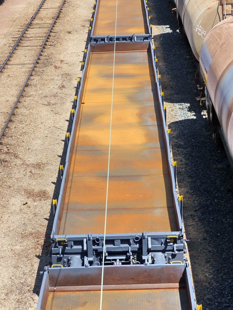 Voici le wagon plat de 18,50 sortant de révision avec une nouvelle livrée