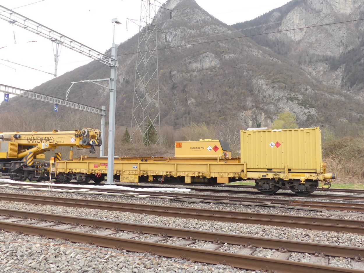 les CFF viennent de terminé des travaux de renouvellement d'aiguillage en gare de Roche VD. Pour charger les anciennes aiguilles, les CFF ont fait appel à la Grue Vanomag Kran IX.