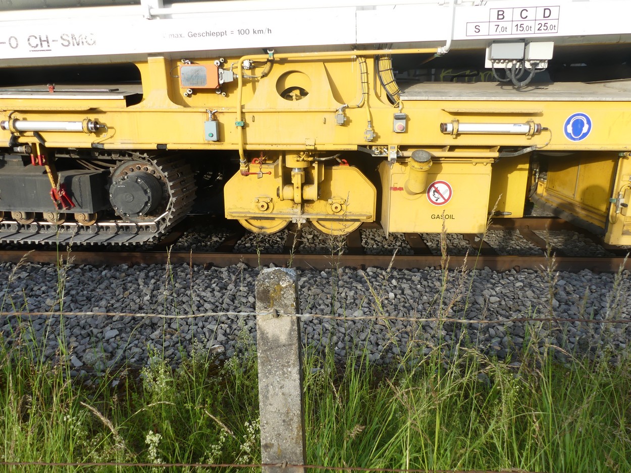 Ce wagon est à chenille étant donné qu'il suit la cribleuse.