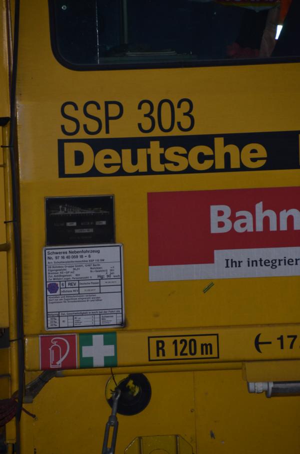 voici la régaleuse Deutsche Plasser SSP 110 SW (No. interne SSP 303) immatriculée 97 16 4 005 918-6 de la DB BahnBau Gruppe (l'Infra allemande...). Désolé pour la qualité de certaines photos!!