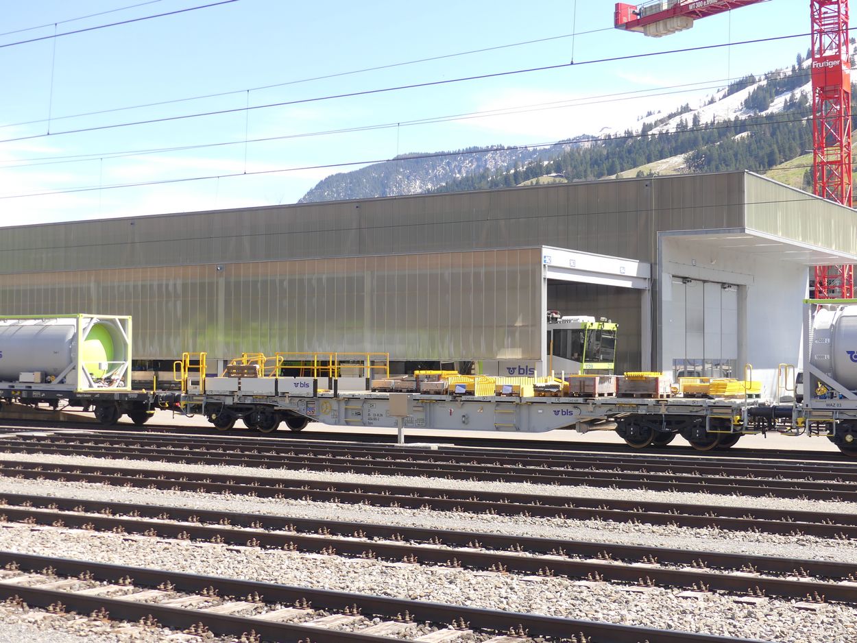 le BLS a fait l’acquisition de plusieurs wagon porte-conteneur pour les travaux. Ces derniers ont gardé leurs immatriculations cargo.