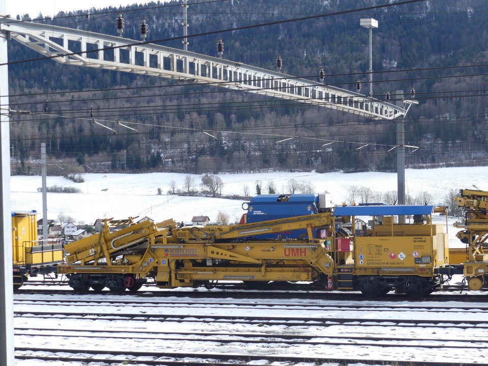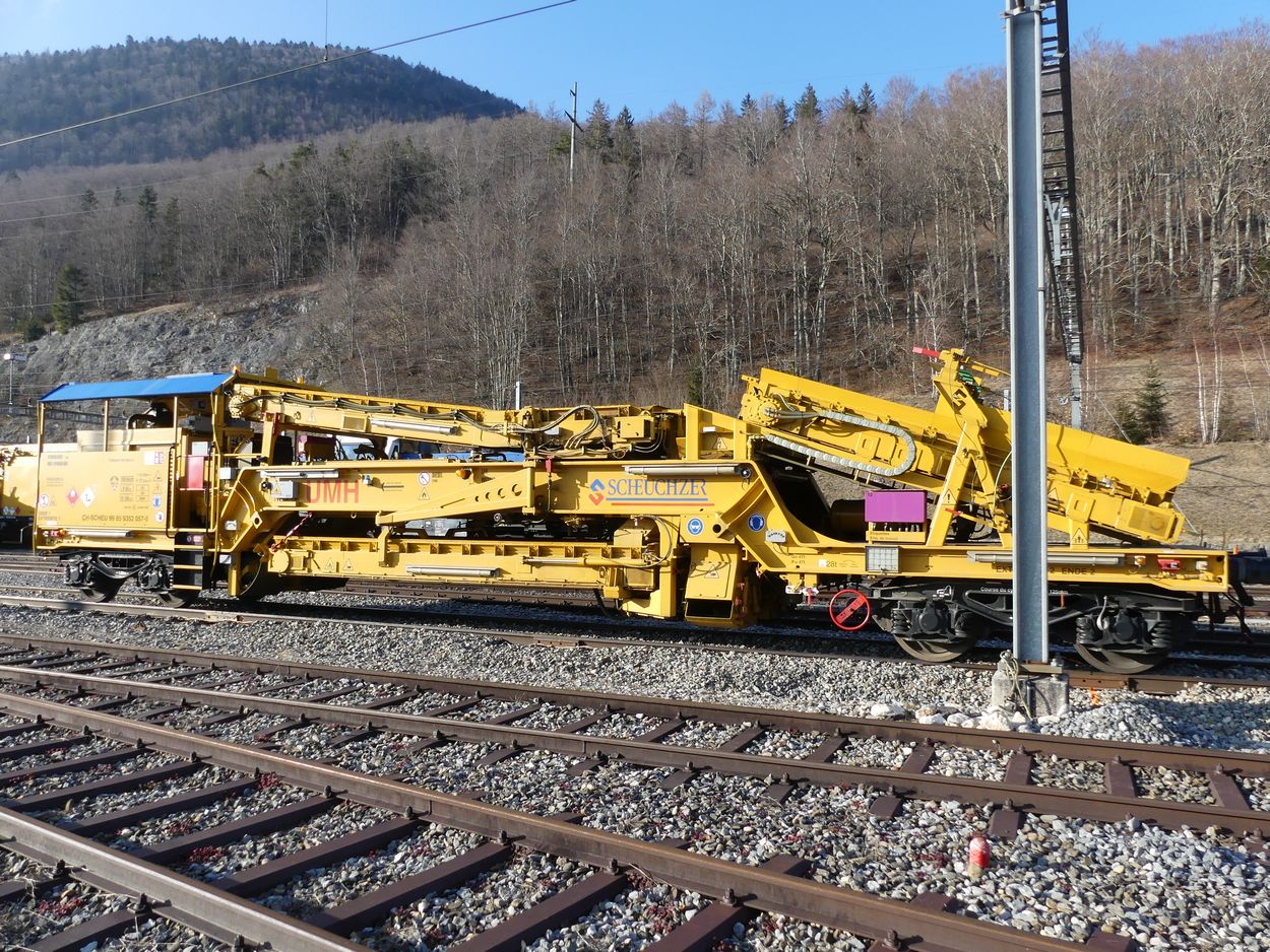 Scheuchzer Possède un wagon Plasser&Theurer type UMH pour vider les VAD. le voici à Vallorbe dimanche.
