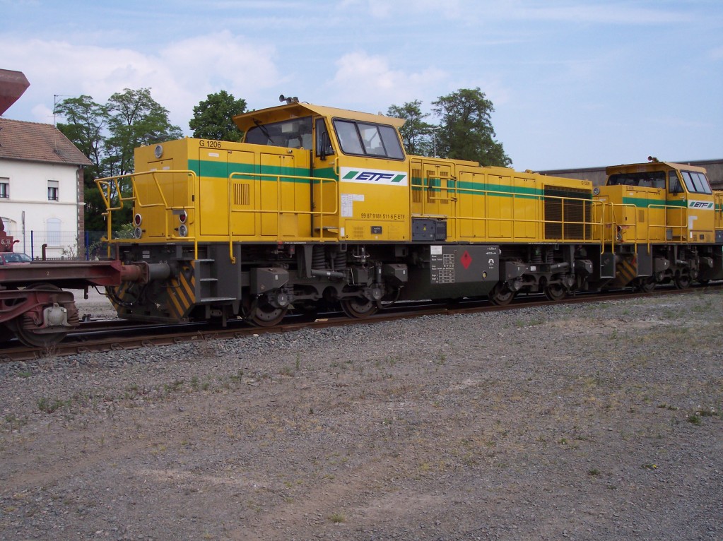 Voici une G 1206 ETF prise sur le triage d'Hourcade. Par contre comme la photo est floue je n'arrive pas à voir le numéro. Quand je compare aux autres photos du site, il y a quelques différences. Portes drapeaux gris, numéro UIC sur la cabine ...
