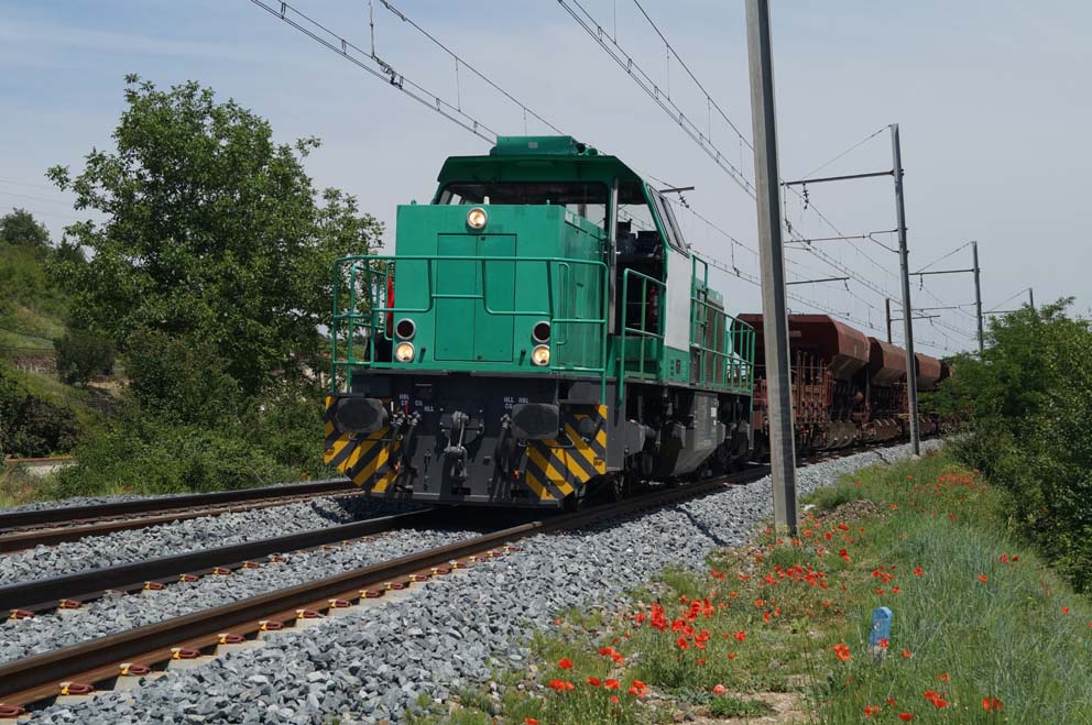 Aujourd'hui 1er juin 2017, elle travaille en tête d'une rame de wagons à ballast sur les travaux de renouvellement