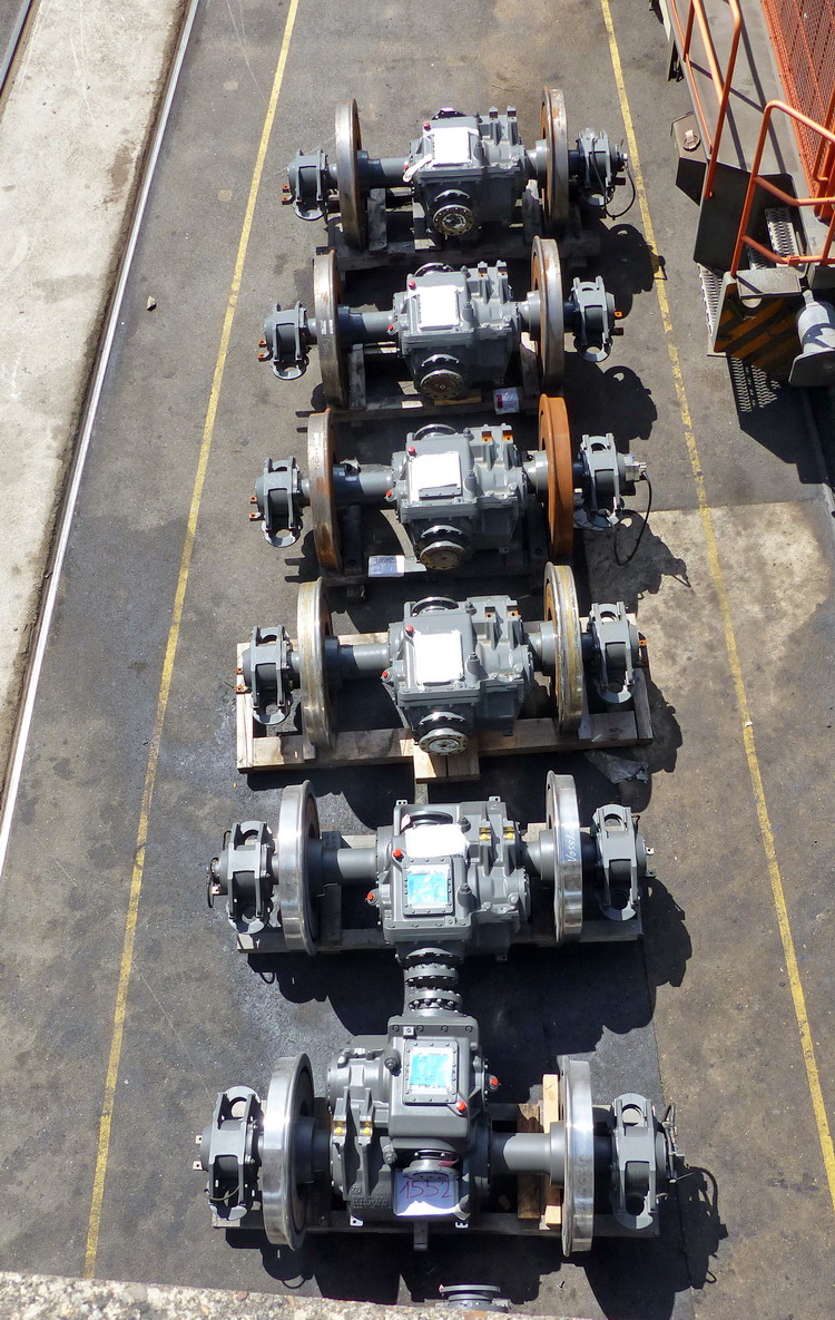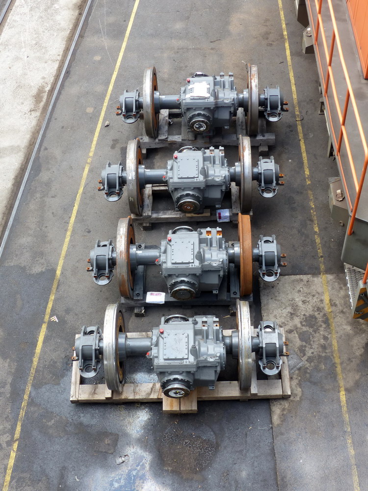 moteur et les essieux neuf pour changement sur les bogies par la suite à l'extérieur de l'atelie