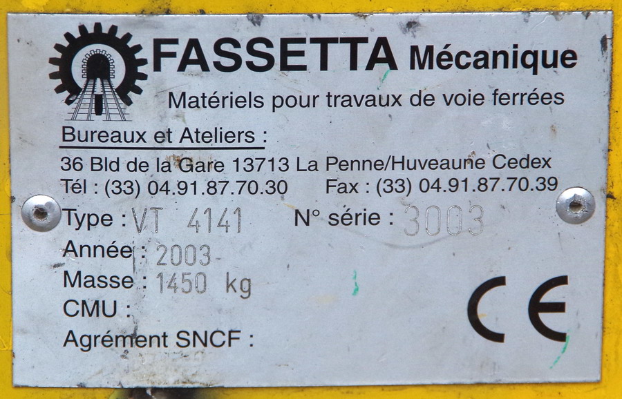 Fassetta VT4141 n°3003 de 2003 SNCF Lorry 4 (Lorry de tournée ligne TGV)