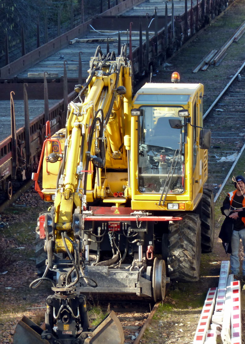 Voici la pelleteuse ATLAS 1404 MZ n°241 Z 301 890 (DPI 140 43) de Meccoli entre l'Infrapôle LGV Atlantique, les voies SPDC Paris ou Vierzon et le triage de Saint Pierre des Corps le dimanche 30 novembre 2014