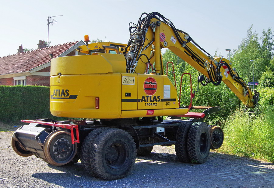 Voici la Pelle Rail route Atlas 1404 KZW n°241Z301929 de 2015 pour ETTB location TP n°460 avec marquage MZ