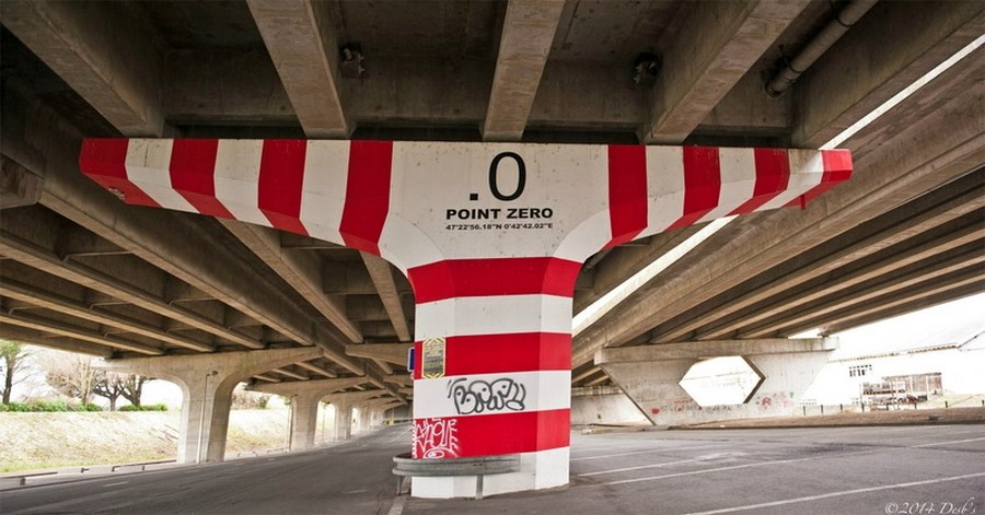 Sous l’autoroute A 10, entre Tours et Saint-Pierre-des-Corps, un pilier a été entièrement peint en rouge et blanc, un "0" noir tracé