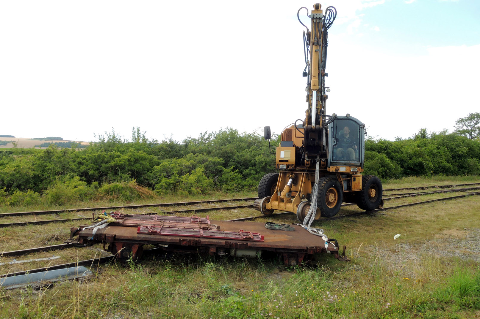 On a eu la voie au mois de juillet, on a donc pu la mettre en action, son premier chantier à consisté à mettre sur les rails une remorque de draisine.