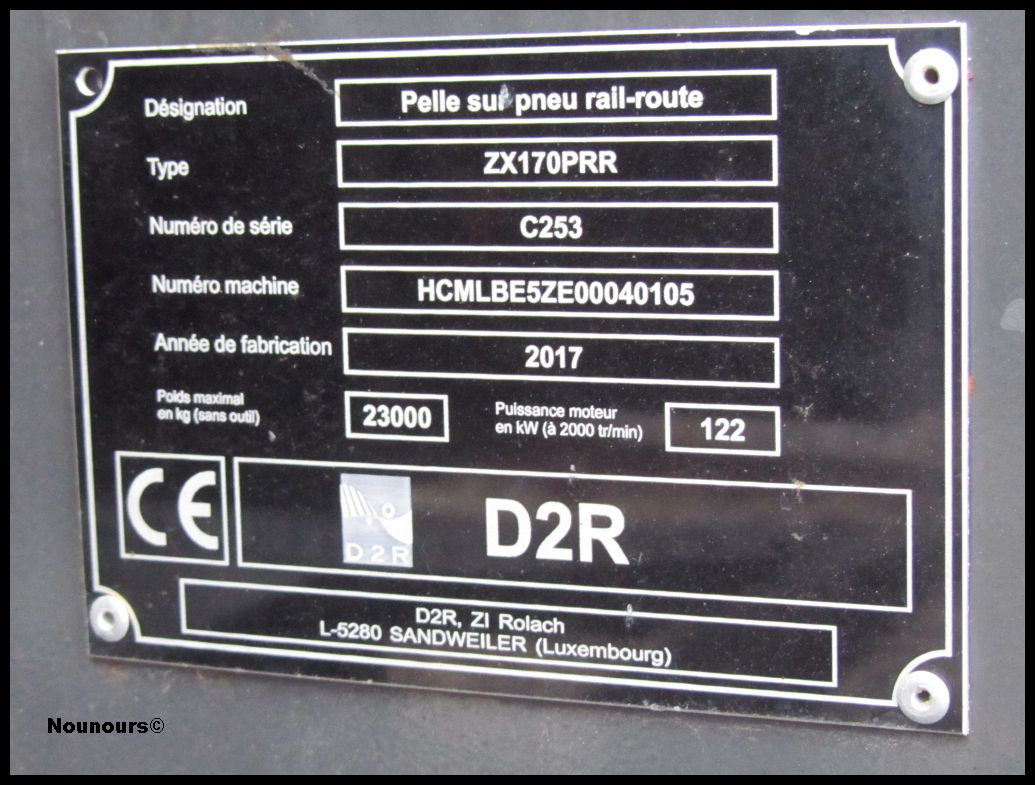 Voici la Pelle Rail route D2R de type ZX170PRR n°HCMLBE5ZE00040105 série C253 de 2017 pour Meccoli