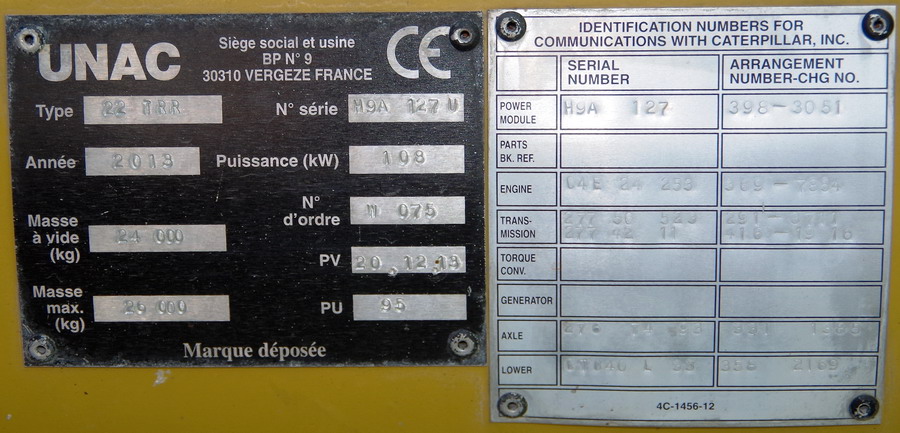 Voici une nouvelle l'UNAC 22 TRR n°H9A127 série W075 de 2013 pour OFFROY NGE Parc n°OF1860 (1)