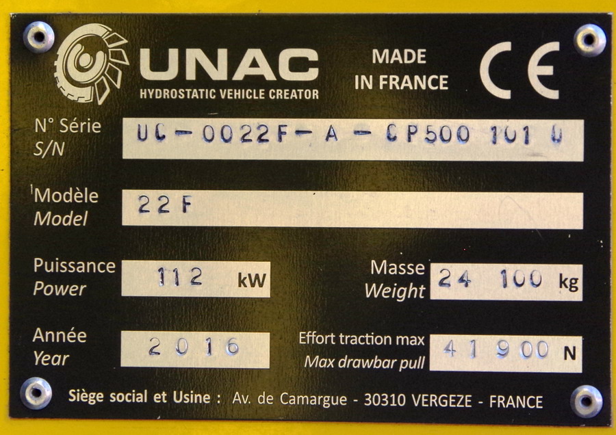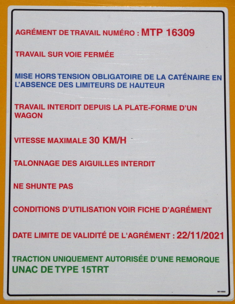 Prototype 1 n° UC0022FACP500101U Agrément de travail MTP 16 309