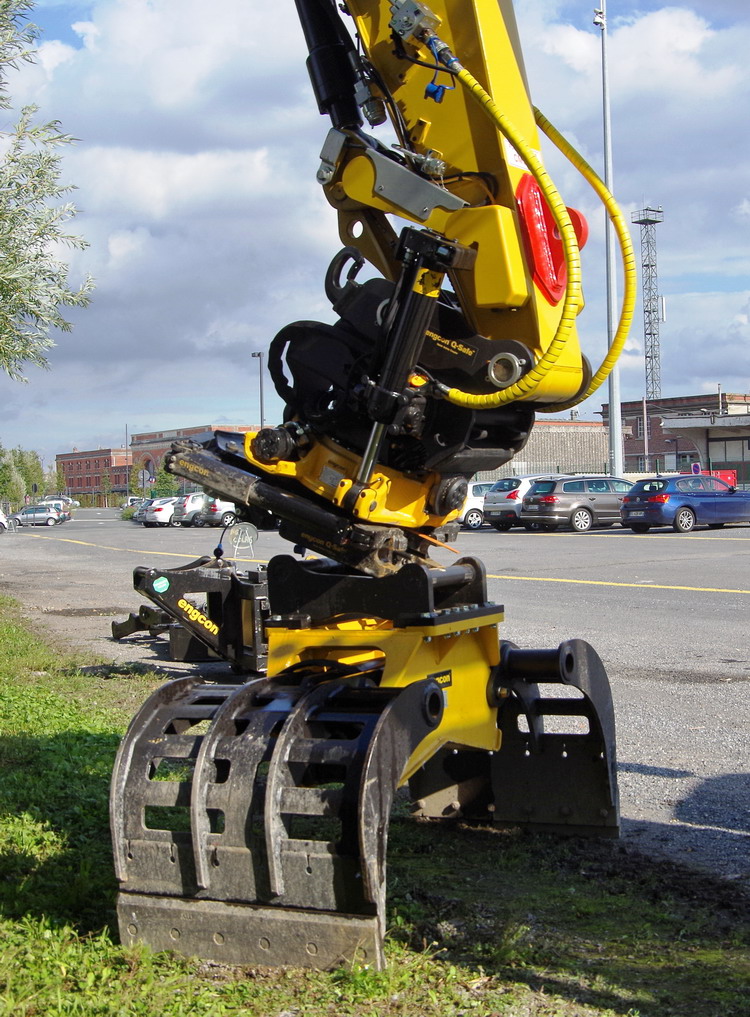 Une autre option est la C18VE/RIG, une benne preneuse avec deux vérins verticaux sans rotator pour montage rigide avec système de changement rapide de coquilles. Au-dessus, une platine pour attached rapide peut être montée directement: idéale, si utilisée en combinaison avec un tiltrotator. Cette variante dispose d'une pièce centrale spécialement renforcée. Avec le système optionnel de cardan spécial, la benne preneuse peut aussi être montée en suspension libre sous le tiltrotator.