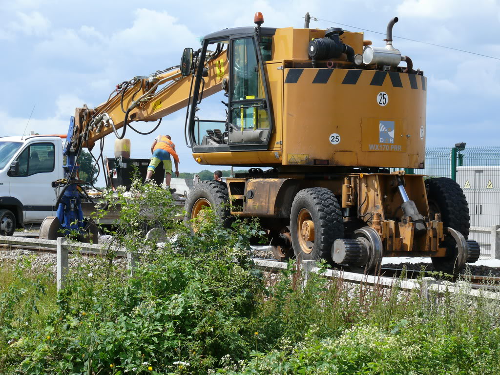 Voici un aperçu en image des pelles rail-route que j'ai vu aujourd'hui sur le RVB de la ligne 21 entre Tournan et Coulommiers. Ce RVB n'a rien de spectaculaire et tout est fait " a l'ancienne" Beaucoup de pelles donc sur ce chantier.