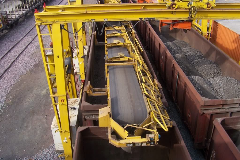 trois photos de tomberaux plein de ballast degarni, il y a de tout ( ballast, terre,....). on voit bien comment le ballast est deposé avec les étraves ( petits tas correspondant au nombre d'étraves sur le tapis). Sur les ETF et COLAS, le chargement n'est pas comme cela car il n'y a qu'une etrave mobile par convoyeur.